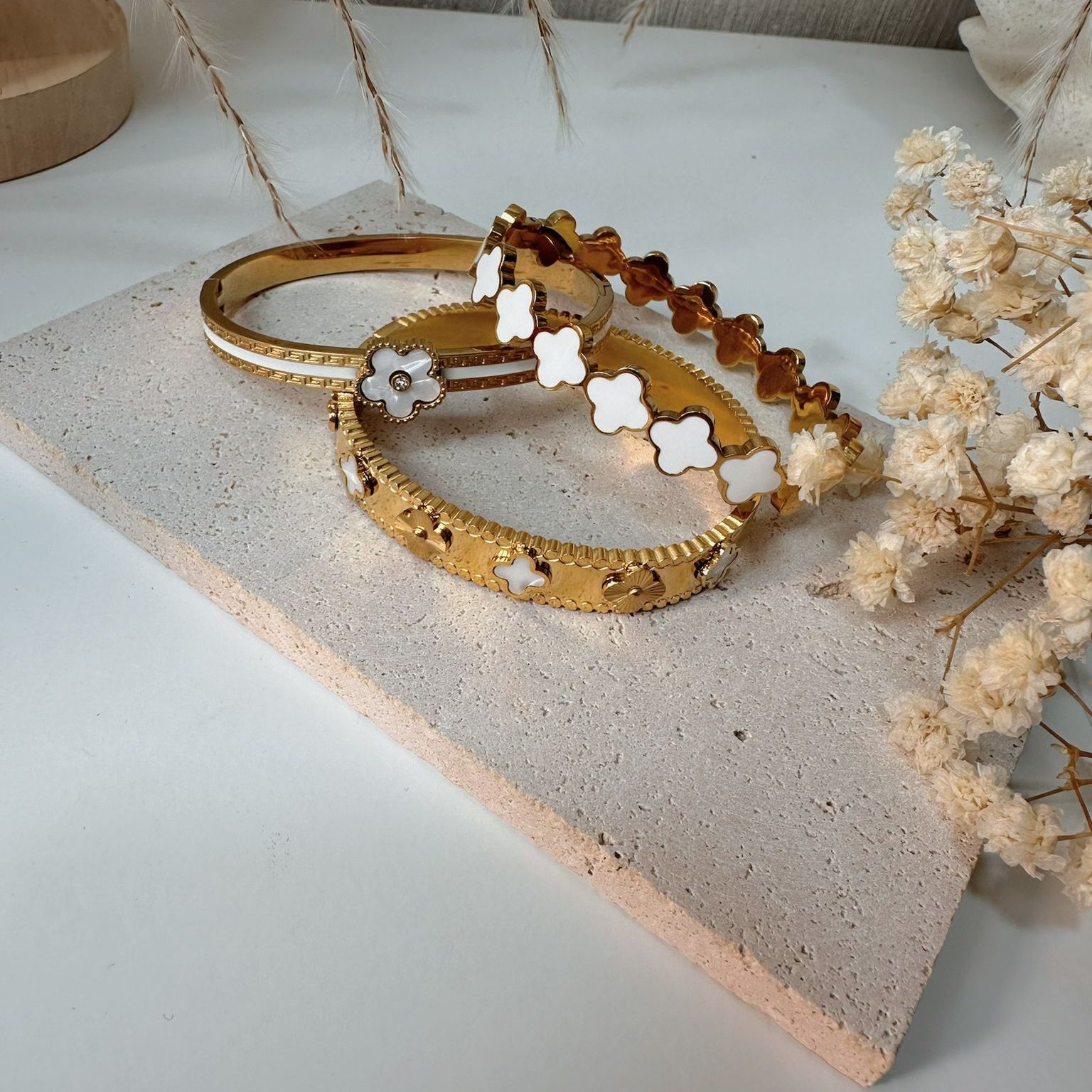 Twin Blanche Clover Bangle