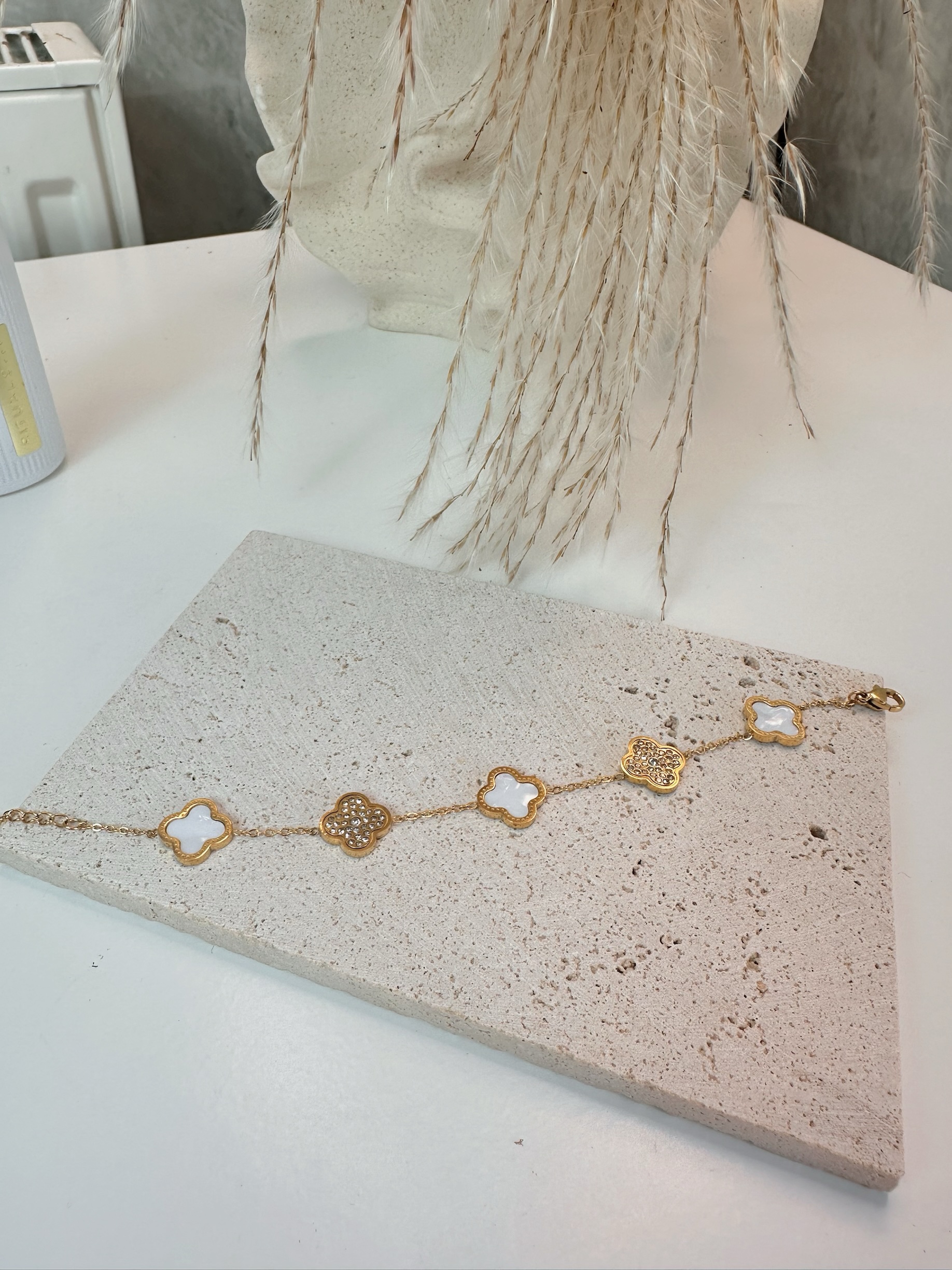 Size: 15+3cm Material: 18k Gold Plated Stainless Steel Color: Gold & White